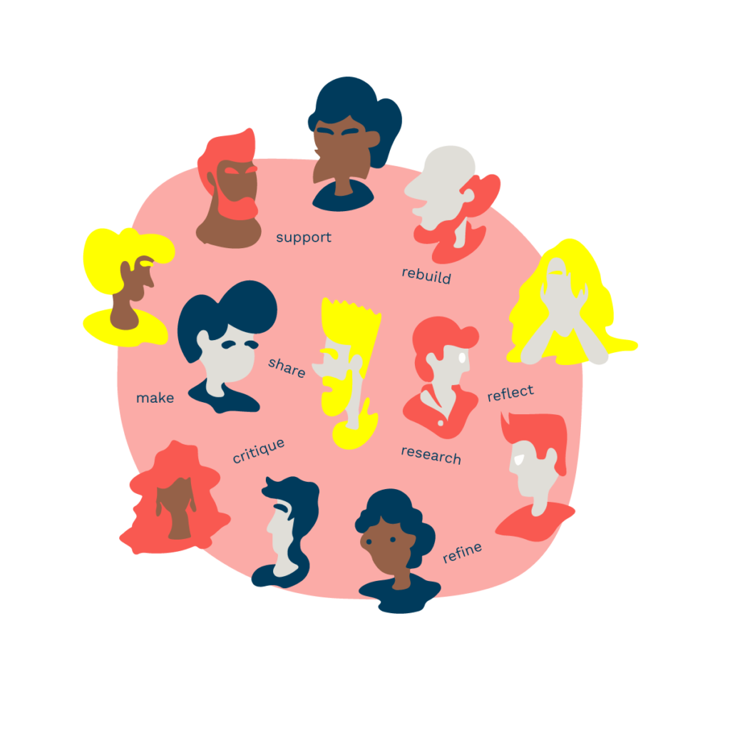 A (good) studio holds individuals accountable to their own growth and the development of others through critique, support, prototyping, making, refining, breaking, rebuilding etc. A studio and all it holds (both tangible and intangible) becomes “the commons” that is nurtured during the creative process. Tangible assets/tools, and space in a studio are treated as valuable assets in the creative process.