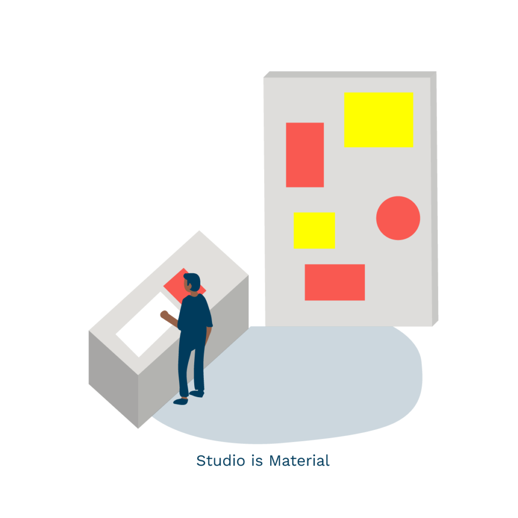 Studio is a container term that holds many meanings for those of us with studio-based practices. This multiplicity of meanings is not troubling in its ambiguity because that container is irreducible to each of its parts, but we can unpack this variety to call attention to all of the ways a studio serves us. We can be precise when we examine what the studio offers us.