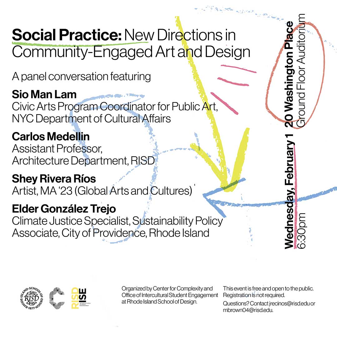 Organized by the Center for Complexity and RISD ISE, this panel discussed new directions in social practice through community-engaged art and design.