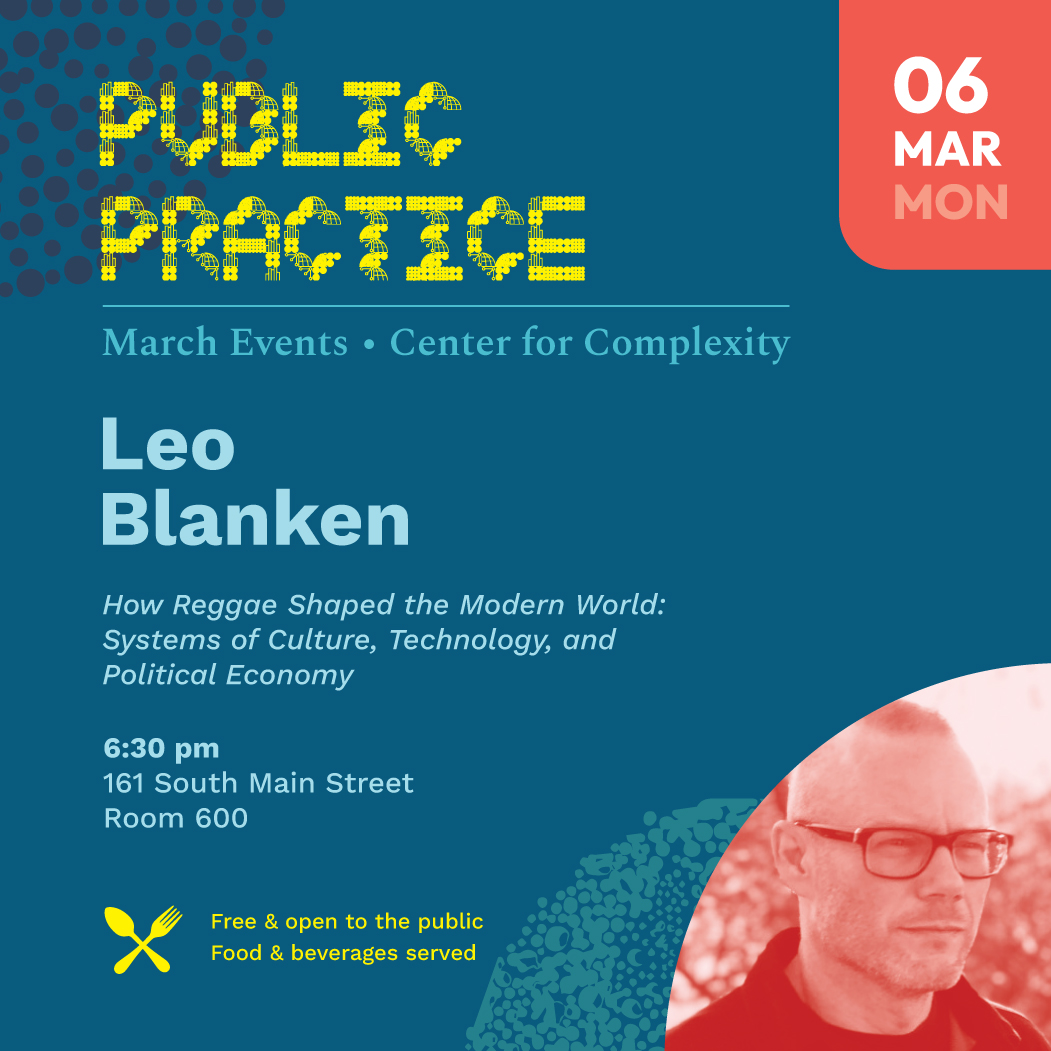 In collaboration with RISD faculty member Tom Weis (Industrial Design), Center for Complexity welcomes Leo Blanken for a lecture and conversation about global cultural flows titled How Reggae Shaped the Modern World: Systems of Culture, Technology, and Political Economy.