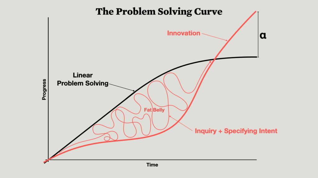 A creative design process doesn’t operate on a linear relationship between time and progress. What may appear to be inefficient is not presumed to be wasteful. Operating in what we call the Fat Belly can be frustrating and uncomfortable. But, it is a process that provides the time to identify and define the actual problem, time for reflection, for the emergence of greater specificity, the exploration of possibility and a multiplicity of potential solutions.